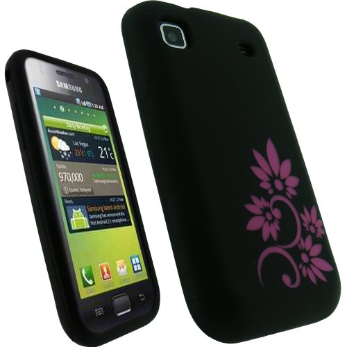 igadgitz Nero Floreale Custodia Silicone Skin Case Cover Protezione per Samsung i9000 Galaxy S Android Smartphone Mobile + Protettore schermo