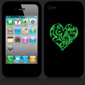 Kit Me Out IT - Apple iPhone 4 / 4G / HD - Protezione Custodia / Cover / Skin en Silicio Soft - Luminous Tribal Hear - Nero/Bianco + LCD Pellicola Protettiva Schermo