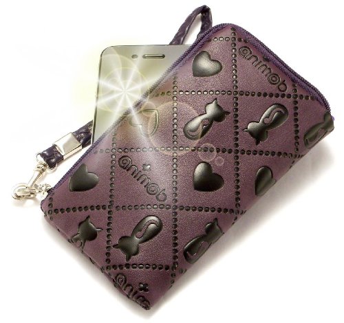 "AniMate" Viola, Elegante portafoglio imbottito con cerniera adatta con cordoncino per Samsung i5500 Corby Smartphone. Bustina con Cerniera / Custodia / Guscio per cellulare.
