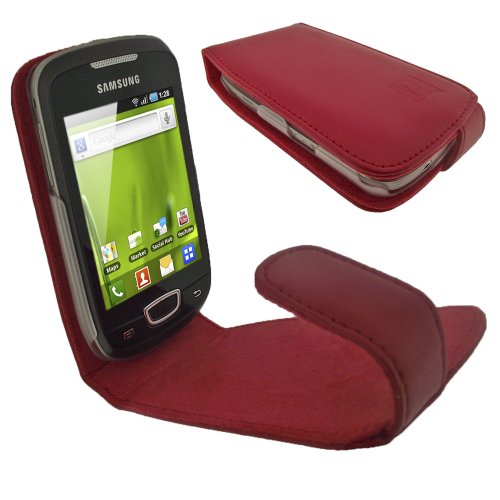 igadgitz Rosso Vera Pelle Custodia Case Cover Protezione per Samsung Galaxy Mini S5570 Smartphone Mobile Telefono + Protettore Schermo