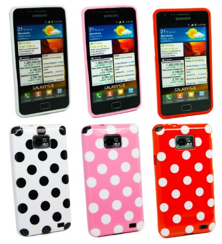 Kit Me Out IT - Samsung Galaxy S2 II i9100 Andriod Pacchetto Di 3 - Protezione Custodia / Cover / Skin TPU Gel Polka Dots 'Pois' Bianco/Nero, Rosa & Rosso