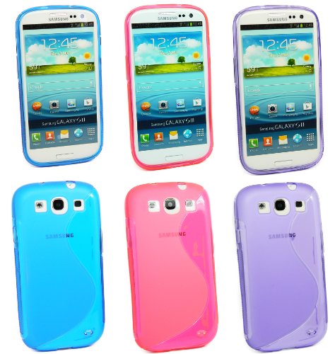 Kit Me Out IT - Samsung Galaxy S3 SIII i9300 Android Pacchetto Di 3 - Protezione Custodia / Cover / Skin TPU Gel 'La S' Blu, Rosa & Porpora