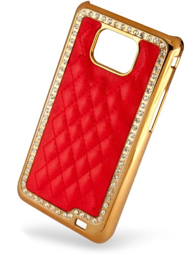 NUOVO Rivestimento posteriore rigido ibrido Involucro protettivo in pelle dorata con pietruzze di acrile per Samsung Galaxy S2 I9100. Di e-port24.