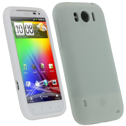 igadgitz Bianco Custodia Silicone Skin Case Cover Protezione per HTC Sensation XL Android Smartphone + Protettore Schermo