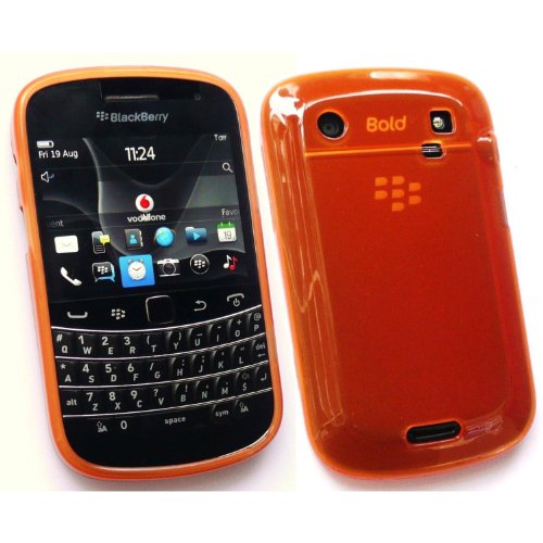 Kit Me Out IT - BlackBerry 9900 Bold - Pacco Di Economia - LCD Pellicola Protettiva Schermo + Protezione Custodia / Cover / Skin en Gel TPU Matt - Arancio + Compatibile Micro USB Nel Caricatore Dell'Automobile