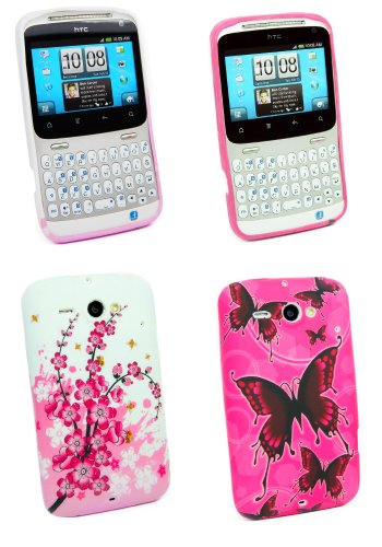 Kit Me Out IT - HTC Chacha Android Pacchetto Di 2 - Protezione Custodia / Cover / Skin TPU Gel Rosa Fiori & Rosa Farfalle