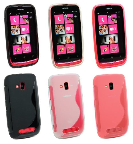 Kit Me Out IT - Nokia Lumia 610 Pacchetto Di 3 - Protezione Custodia / Cover / Skin TPU Gel 'Le S' Rosa, Trasparente & Nero