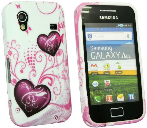 Kit Me Out IT - Samsung Galaxy Ace S5830 Android Pacco Di Economia - Protezione Custodia / Cover / Skin Gel TPU Porpora Cuori + LCD Pellicola Protettiva Schermo + Compatibile Micro USB Nel Caricatore Dell'Automobile