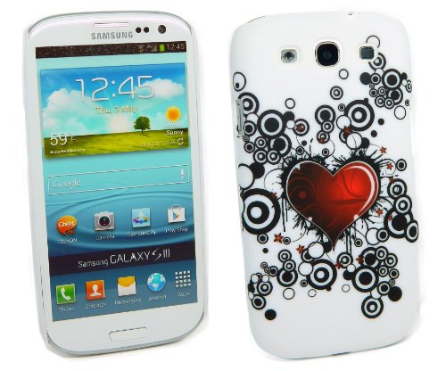 Kit Me Out IT - Samsung Galaxy S3 SIII i9300 Android Pacco Di Economia - Duro Protezione Custodia / Cover / Skin Clip Sul Tattoo Cuore + LCD Pellicola Protettiva Schermo + Compatibile Micro USB Nel Caricatore Dell'Automobile