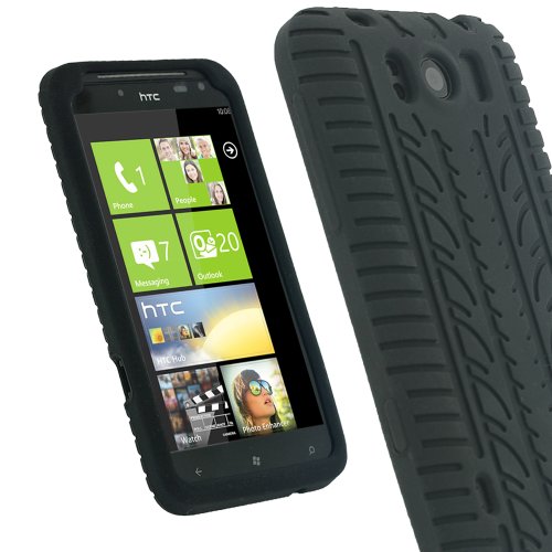 igadgitz Nero Pneumatico Custodia Silicone Skin Case Cover Protezione per HTC Titan X310e Android Smartphone Movil