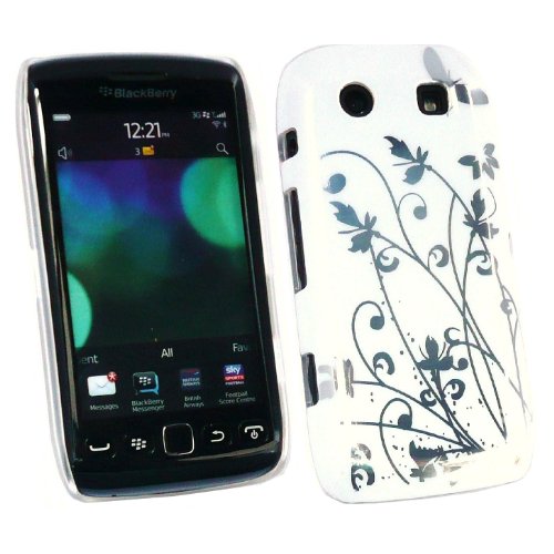 Kit Me Out IT - BlackBerry 9860 / 9850 Torch - Protezione Custodia / Cover / Skin Super Slim Bianco Con Argento Fiori + LCD Pellicola Protettiva Schermo