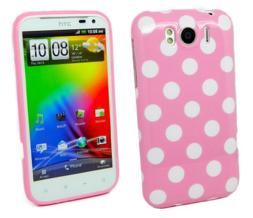 Kit Me Out IT - HTC Sensation XL Android Protezione Custodia / Cover / Skin TPU Gel Polka Dots 'Pois' Rosa + LCD Pellicola Protettiva Schermo