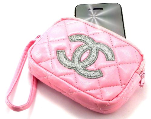 "Fiero" Rosa, Elegante doppio portafoglio / custodia in pelle finta, con cerniera, imbottito con ciondolo per Samsung i5500 Corby Smartphone. Bustina con Cerniera / Custodia / Guscio per cellulare.