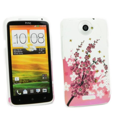 Kit Me Out IT - HTC One X Android Pacco Di Economia - Duro Protezione Custodia / Cover / Skin Clip Sul Rosa Fiori + LCD Pellicola Protettiva Schermo + Compatibile Micro USB Nel Caricatore Dell'Automobile