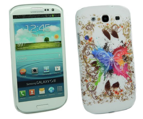 Kit Me Out IT - Samsung Galaxy S3 SIII i9300 Android Pacco Di Economia - Duro Protezione Custodia / Cover / Skin Clip Sul Coloured Farfalla + LCD Pellicola Protettiva Schermo + Compatibile Micro USB Nel Caricatore Dell'Automobile