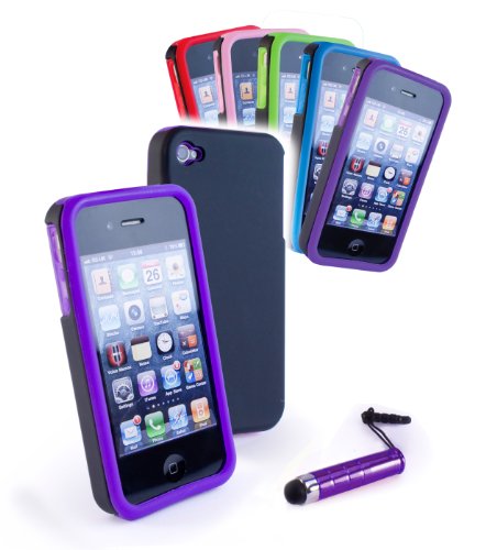 E-volve Gel 'Twin-Skin' Smartphone Kit per Apple iPhone 4 / 4S (Guscio, Stylus e protettore di schermo) - Viola
