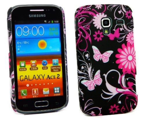 Kit Me Out IT - Samsung Galaxy Ace 2 i8160 Android Pacco Di Economia - Duro Protezione Custodia / Cover / Skin Clip Sul Rosa Giardino + LCD Pellicola Protettiva Schermo + Compatibile Micro USB Nel Caricatore Dell'Automobile