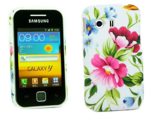Kit Me Out IT - Samsung Galaxy Y S5360 Android Pacco Di Economia - Duro Protezione Custodia / Cover / Skin Clip Sul Vintage Fiori + LCD Pellicola Protettiva Schermo + Compatibile Micro USB Nel Caricatore Dell'Automobile