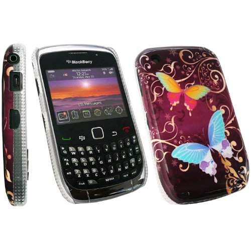 Kit Me Out IT - BlackBerry 8520 Curve / 9300 Curve 3G - Pacco Di Economia - LCD Pellicola Protettiva Schermo + Compatibile Micro USB Nel Caricatore Dell'Automobile + Protezione Custodia / Cover / Skin Solide Farfalla