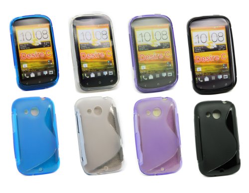 Kit Me Out IT - HTC Desire C Android Pacchetto Di 4 - Protezione Custodia / Cover / Skin 'Le S' Nero, Blu, Trasparente & Porpora
