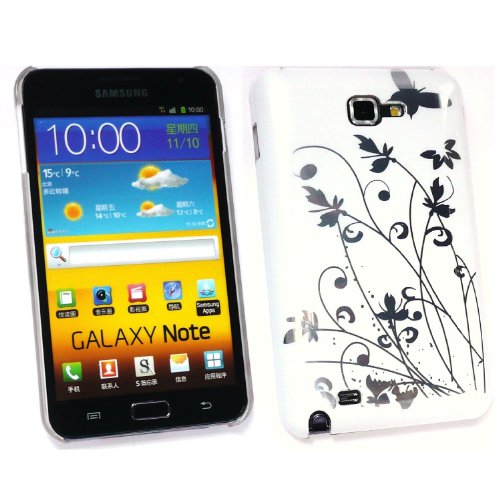 Kit Me Out IT - Samsung Galaxy Note - Protezione Custodia / Cover / Skin Super Slim Bianco Con Argento Fiori + LCD Pellicola Protettiva Schermo