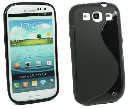 Kit Me Out IT - Samsung Galaxy S3 SIII i9300 Android Android - Pacco Di Economia - Protezione Custodia / Cover / Skin TPU Gel 'La S' Nero + LCD Pellicola Protettiva Schermo + Compatibile Micro USB Nel Caricatore Dell'Automobile