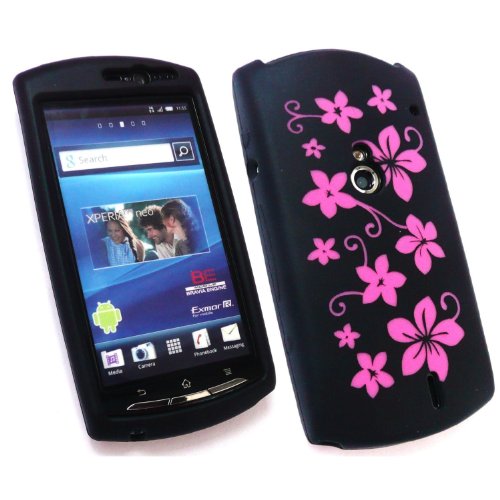 Kit Me Out IT - Sony Ericsson Xperia Neo - Pacco Di Economia - LCD Pellicola Protettiva Schermo + Protezione Custodia / Cover / Skin en Silicio Soft - Floral Nero + Compatibile Micro USB Nel Caricatore Dell'Automobile
