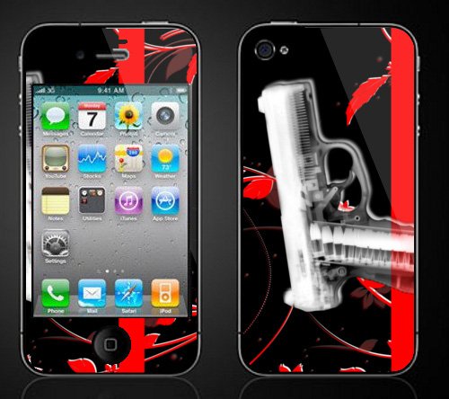 Skin adesiva in vinile per iPhone 4 - 4S GUN & FLOWERS