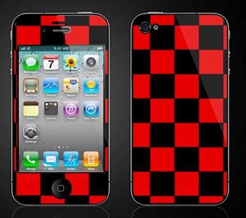 Skin adesiva in vinile per iPhone 4 - 4S SCACCHI ROSSO NERO