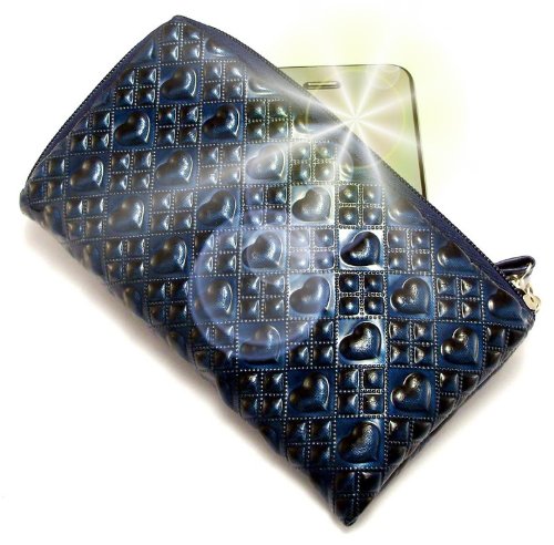 "Amore" Blu, Elegante portafogli imbottito con finitura lucida e cerniera con cordoncino per Samsung i5500 Corby Smartphone. Bustina imbottita con cerniera / Custodia / Guscio per cellulare.