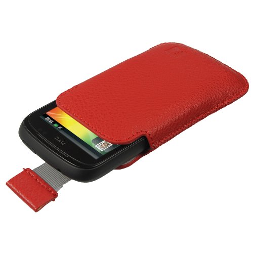 igadgitz Rosso Eco Pelle Pouch Custodia Case Cover Protezione per HTC Explorer A310e Android Smartphone Movil