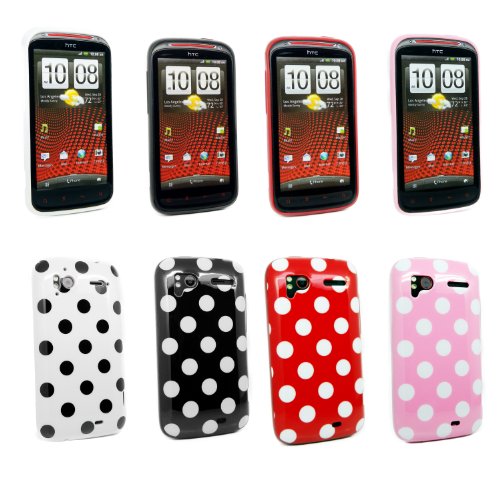 Kit Me Out IT - HTC Sensation / Sensation XE Pacchetto Di 4 - Protezione Custodia / Cover / Skin TPU Gel 'Pois' Rosa, Nero/Bianco, Rosso & Bianco/Nero