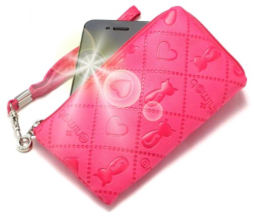 "AniMate" Rosa Scuro, Elegante portafoglio imbottito con cerniera adatta con cordoncino per Samsung i5500 Corby Smartphone. Bustina con Cerniera / Custodia / Guscio per cellulare.