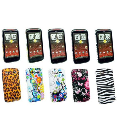 Kit Me Out IT - HTC Sensation / Sensation XE Pacchetto Di 5 - Duro Protezione Custodia / Cover / Skin Clip Sul Nero/Bianco Zebra, Rosa Giardino, Brun Leopardo, Cerchi Con Fiori & Country Giardino