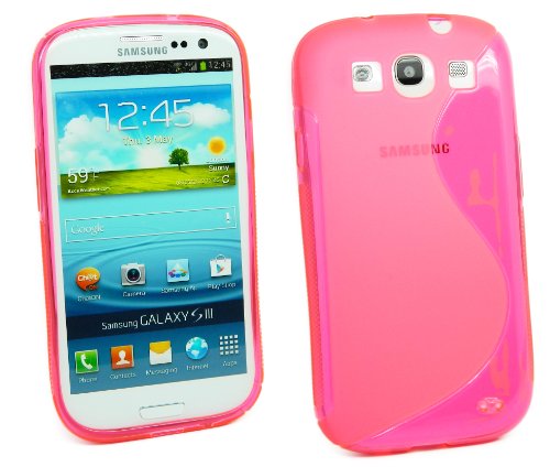 Kit Me Out IT - Samsung Galaxy S3 SIII i9300 Android Android - Pacco Di Economia - Protezione Custodia / Cover / Skin TPU Gel 'La S' Rosa + LCD Pellicola Protettiva Schermo + Compatibile Micro USB Nel Caricatore Dell'Automobile