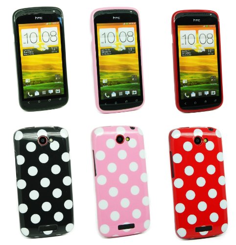 Kit Me Out IT - HTC One S Android Pacchetto Di 3 - Protezione Custodia / Cover / Skin TPU Gel 'Pois' Rosa, Nero/Bianco & Rosso