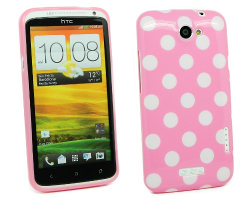 Kit Me Out IT - HTC One X Android Protezione Custodia / Cover / Skin TPU Gel 'Pois' Rosa + LCD Pellicola Protettiva Schermo