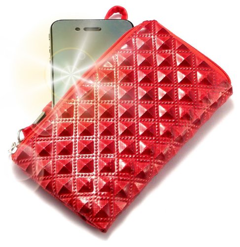 "Principessa" Rosso, Elegante portafogli imbottito con finitura lucida e cerniera con cordoncino per Samsung i5500 Corby Smartphone. Bustina imbottita con cerniera / Custodia / Guscio per cellulare.