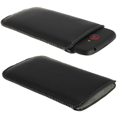 igadgitz Nero Vera Pelle Pouch per HTC One S Android Custodia Case Cover Protezione 1 Uno
