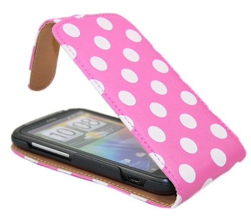 iTALKonline ROSA BIANCO POIS FlipMatic Easy Clip On verticale flip cover Custodia con supporto e protezione dello schermo per HTC Sensation XE HD Andriod SmartPhone