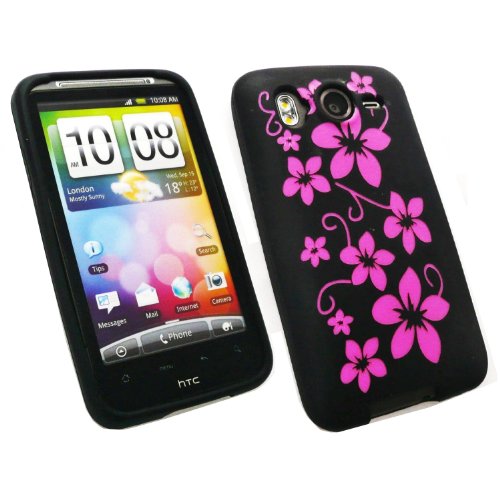 Kit Me Out IT - HTC Desire HD - Protezione Custodia / Cover / Skin en Silicio Soft - Fiori Nero