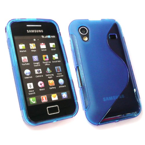 Kit Me Out IT - Samsung Galaxy Ace S5830 - Pacco Di Economia - Protezione Custodia / Cover / Skin en Gel TPU - 'La S' Blu + LCD Pellicola Protettiva Schermo + Compatibile Micro USB Nel Caricatore Dell'Automobile