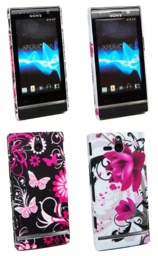 Kit Me Out IT - Sony Xperia U Android Android Pacchetto Di 2 - Duro Protezione Custodia / Cover / Skin Clip Sul Rosa Giardino & Porpora Fiori