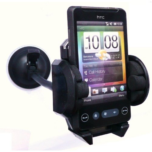 Kit Me Out IT - Aspirazione Porta Telefono / Auto Universale Supporto Telefonico - 7 inch - Nero - Compatibile Nel Caricatore Dell'Automobile + LCD Pellicola Protettiva Schermo HTC HD Mini -