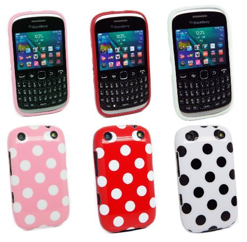Kit Me Out IT - BlackBerry 9320 Curve Pacchetto Di 3 - Protezione Custodia / Cover / Skin TPU Gel Polka Dots 'Pois' Rosa, Bianco/Nero & Rosso