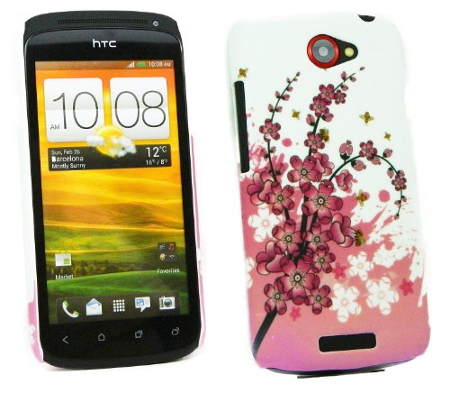 Kit Me Out IT - HTC One S Android Pacco Di Economia - Duro Protezione Custodia / Cover / Skin Clip Sul Rosa Fiori + LCD Pellicola Protettiva Schermo + Compatibile Micro USB Nel Caricatore Dell'Automobile
