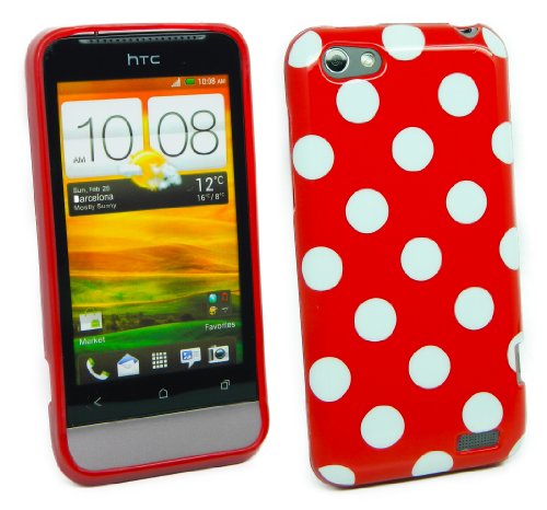Kit Me Out IT - HTC One V Android Protezione Custodia / Cover / Skin TPU Gel Polka Dots 'Pois' Rosso