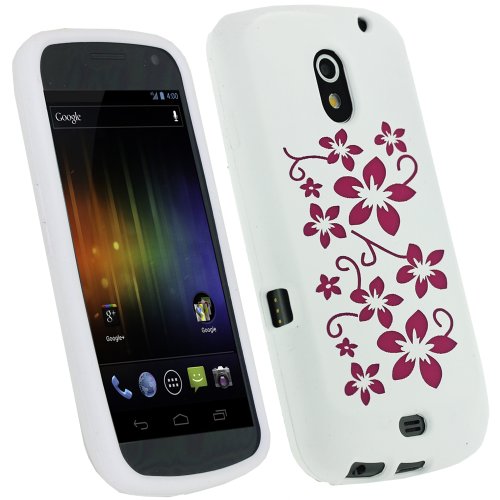 igadgitz Bianco & Rosa Floreale Custodia Silicone Skin Case Cover Protezione per Samsung Galaxy Nexus i9250 Android Smartphone + Protettore Schermo