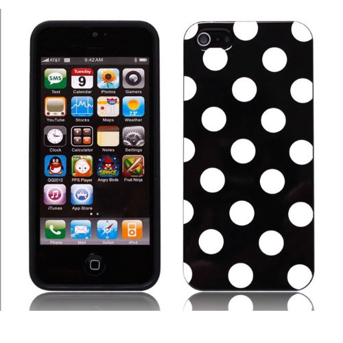 Kit Me Out IT - Apple iPhone 5 5G Protezione Custodia / Cover / Skin TPU Gel 'Pois' Nero & Bianco