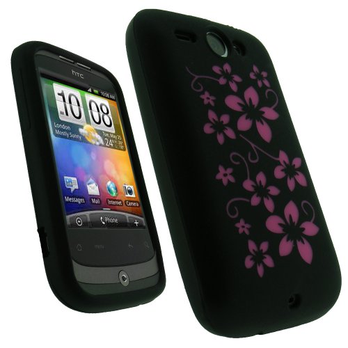 igadgitz Nero Floreale Custodia Silicone Skin Case Cover Protezione per HTC Wildfire G8 Android Smartphone + Protettore schermo